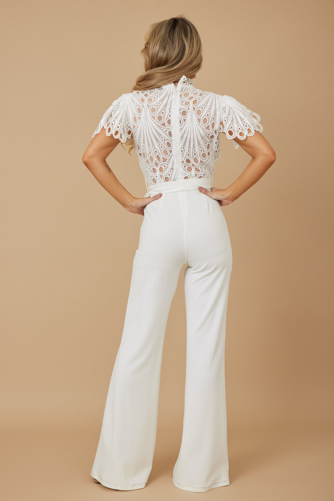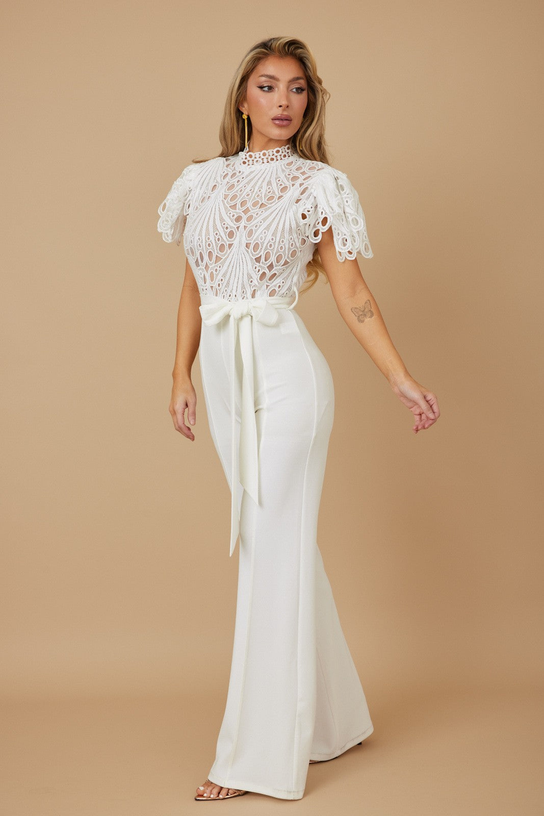 Palazzo blanco con parte de arriba en encaje y pantalón en licra