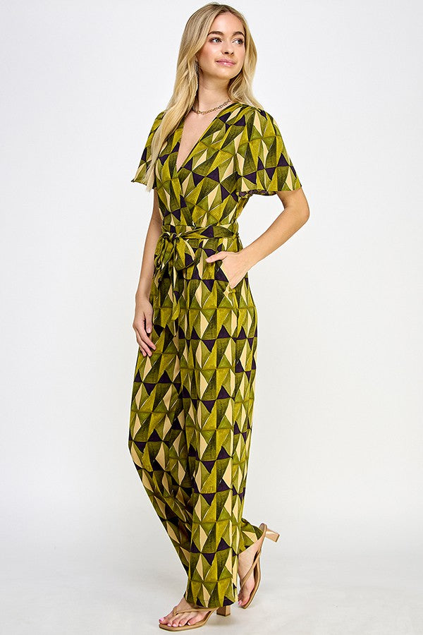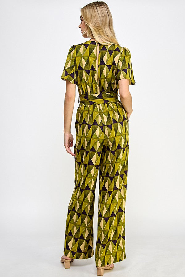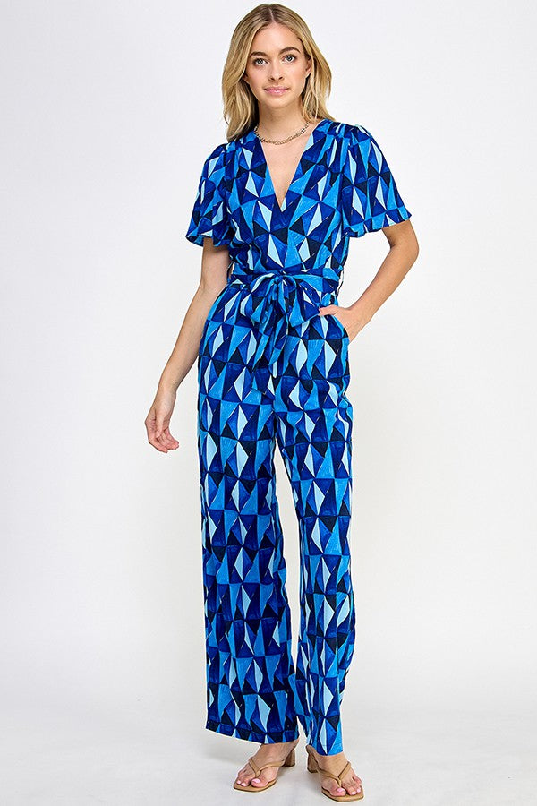 Palazzo en estampado geométrico con cinto de tela, disponible en color azul