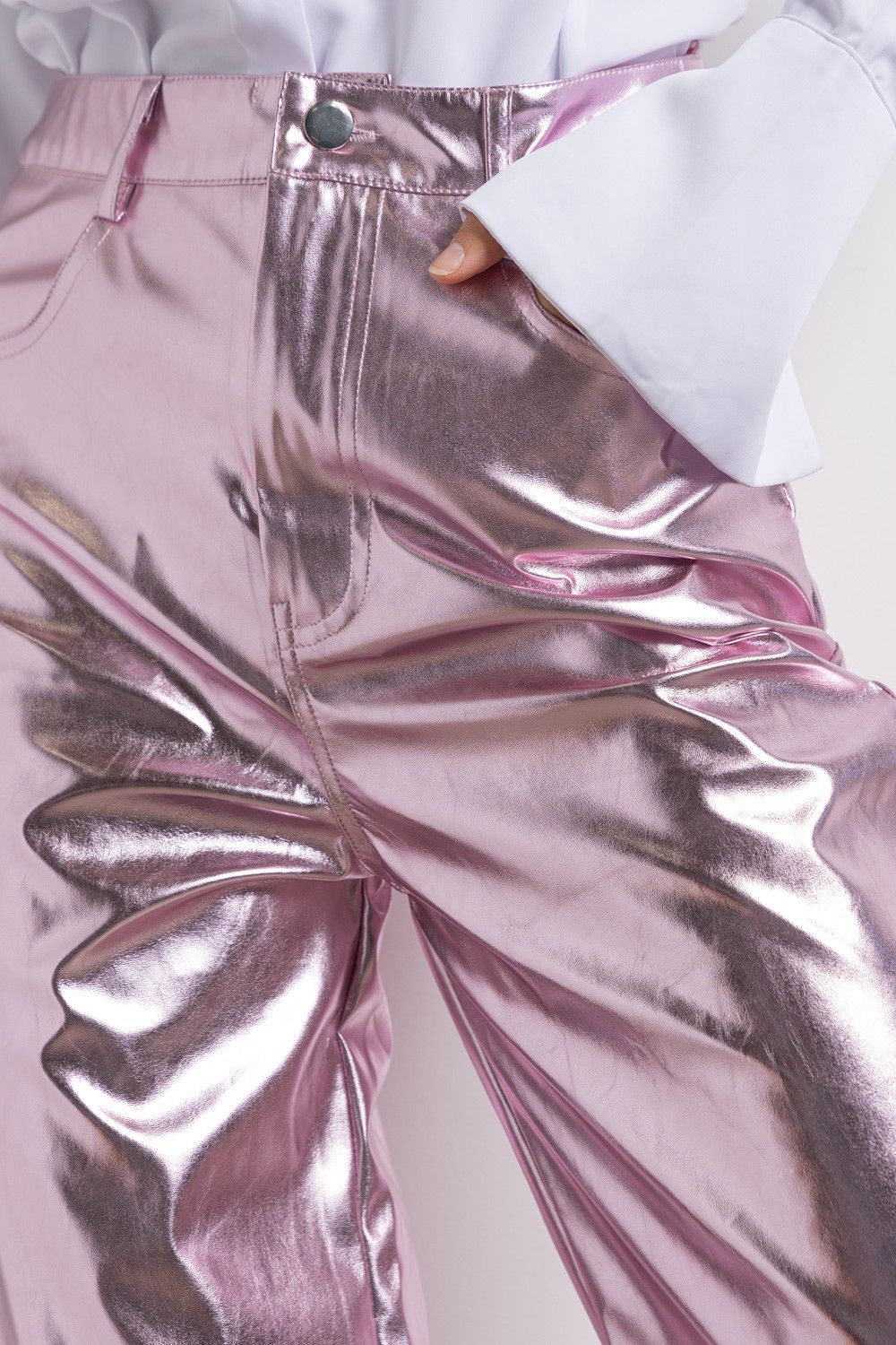 Disfruta de una sencilla elegancia con nuestro Pantalón metálico. Está diseñado con tela rosa metálica y cuenta con un tiro alto con un discreto botón plata, además de bolsillos para una comodidad única. Esta es una prenda que destaca por su exclusividad, perfeccionando con estilo cualquier look moderno.