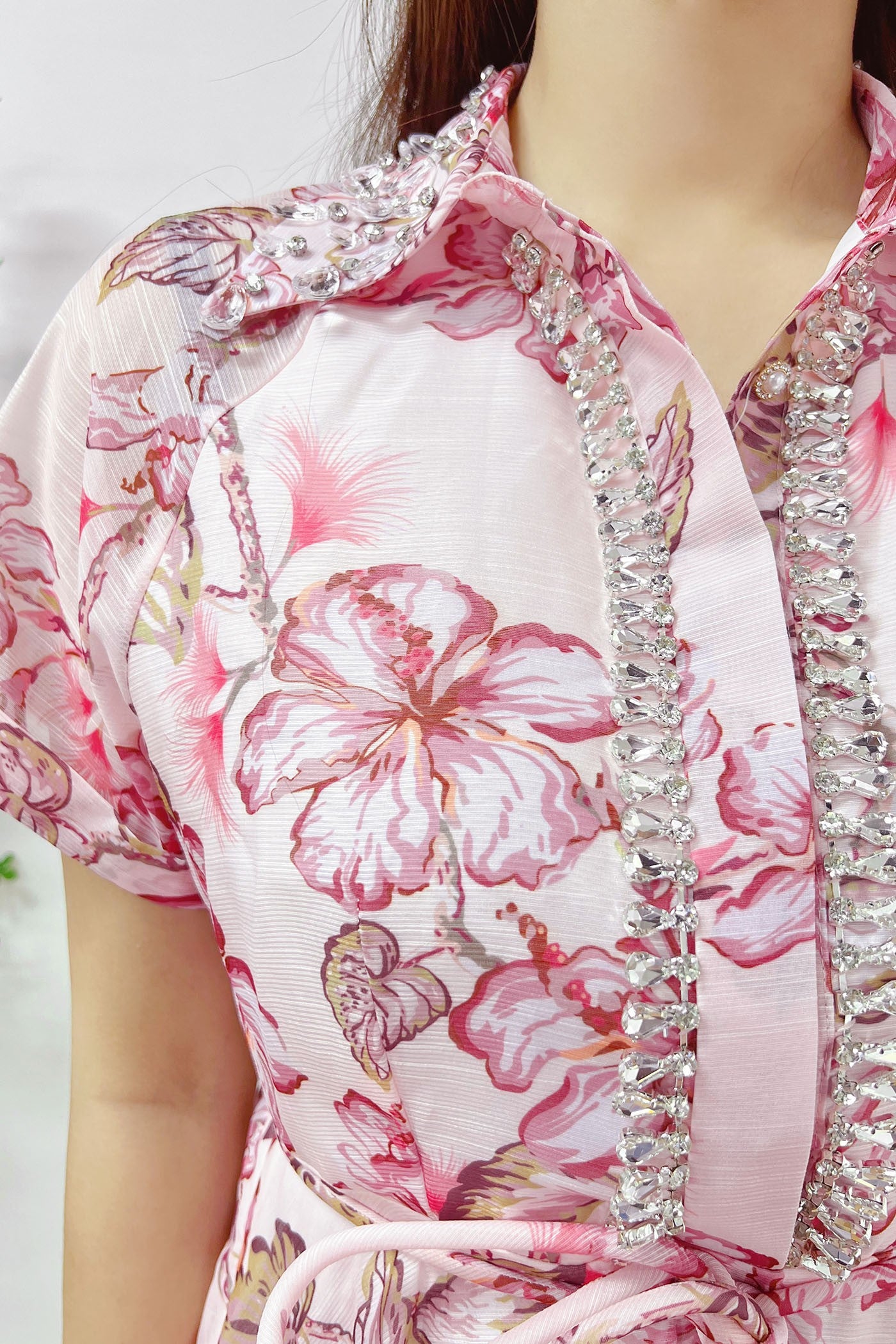 Vestido corto con detalle de pedrería al frente